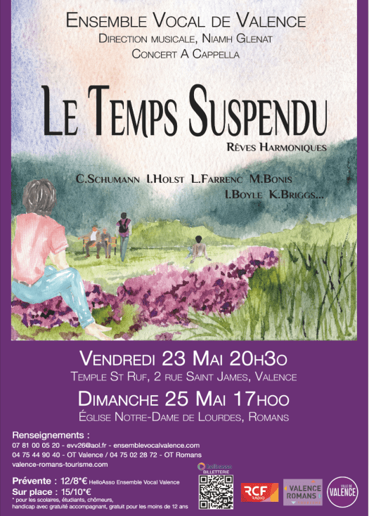 L’Ensemble Vocal de Valence, sous la direction de Niamh Glenat, a le plaisir de vous convier à ce nouveau concert chanté A Cappella