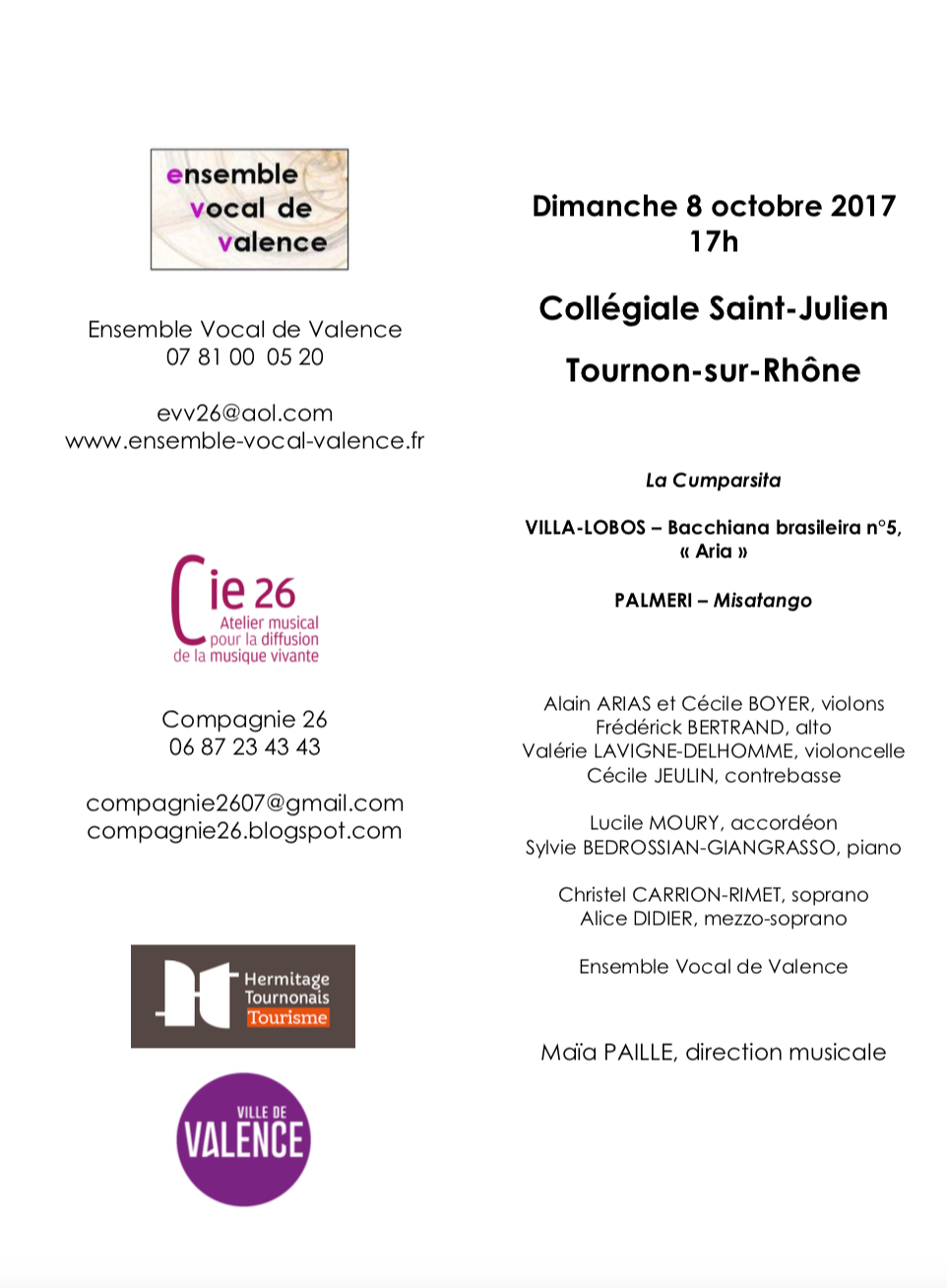 Concerts de musique profane ( Brahms, Bartok, Dvorak, Sibelius, Janacek…) au Théâtre de la ville de Valence